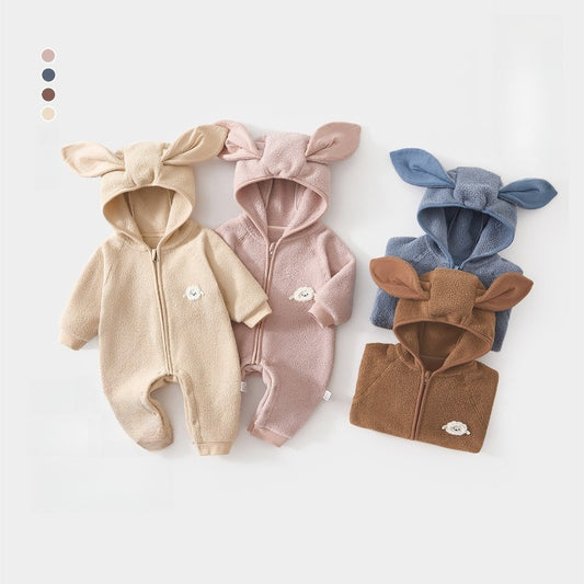 Quilted Microfleece Zip-up Hooded Romper - Beige Sheep