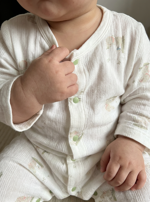 100% Cotton Snap-up Long-Sleeve Romper - Pink Dream Garden