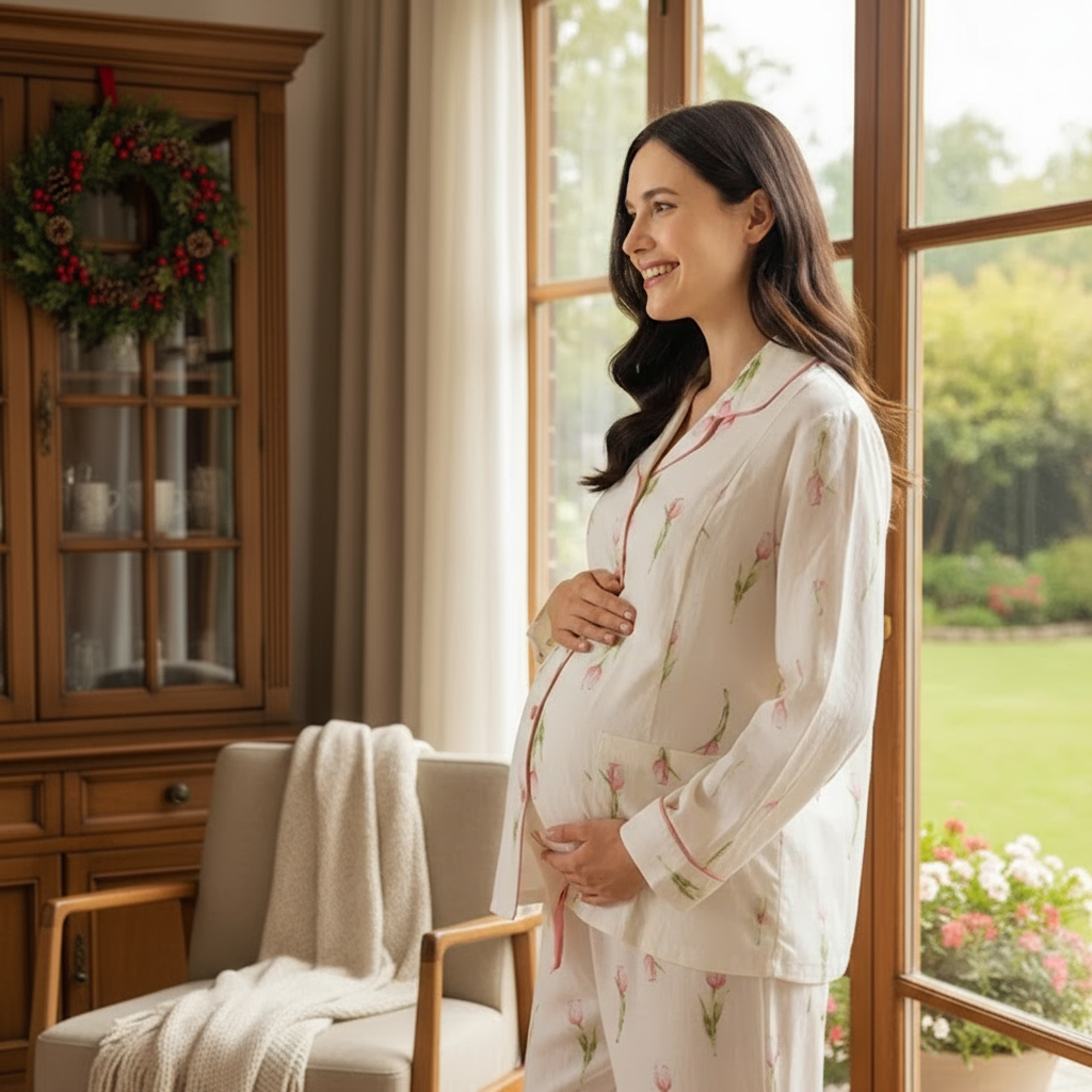 Nursing pajama set provides exceptional softness and breathability to ensure a restful night's sleep.
