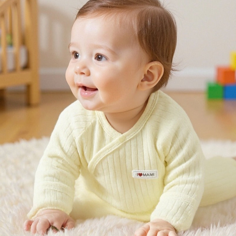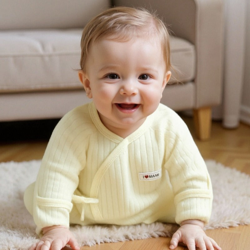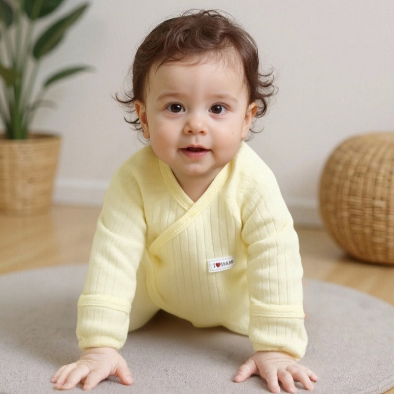 - Kimono / Wrap Style: This style opens completely at the front and is secured with snaps. It's perfect for newborns as you don't have to pull anything over their head or umbilical cord stump. It also allows for easy layering and is ideal for checking on medical devices or monitors.