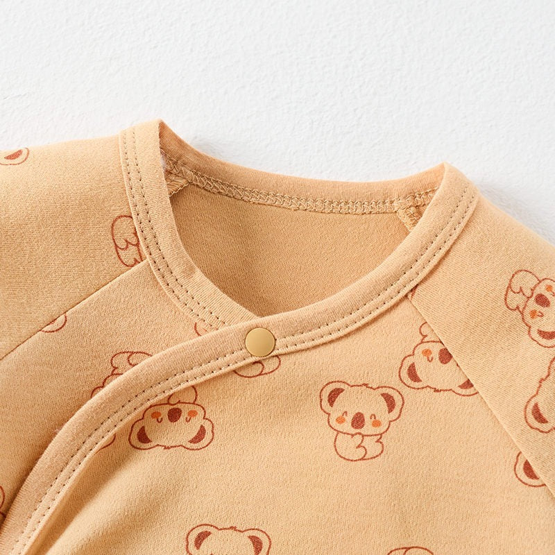- Kimono / Wrap Style: This style opens completely at the front and is secured with snaps. It's perfect for newborns as you don't have to pull anything over their head or umbilical cord stump. It also allows for easy layering and is ideal for checking on medical devices or monitors.
