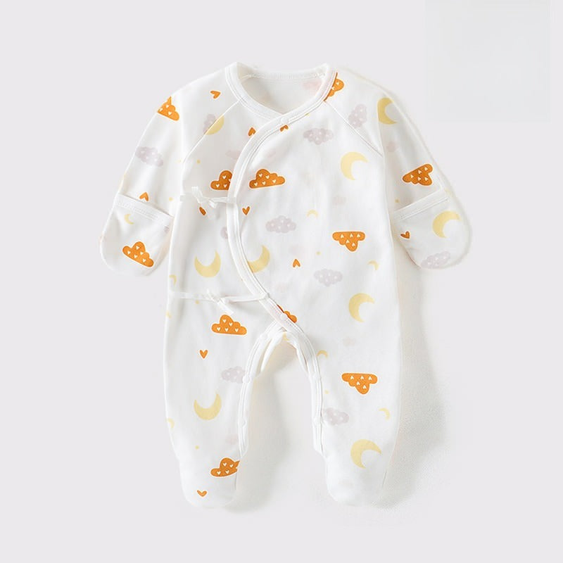 100% Cotton Footed Onesie with Mittens - Cloud & Moon