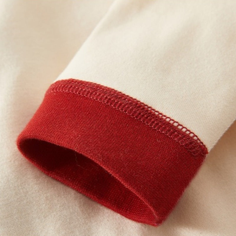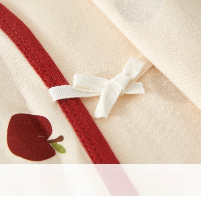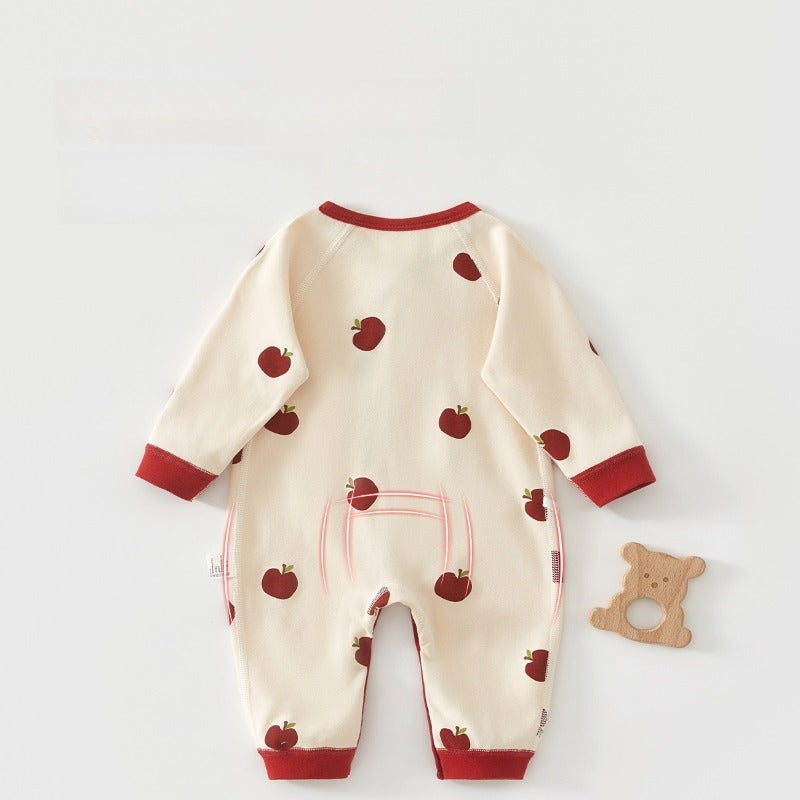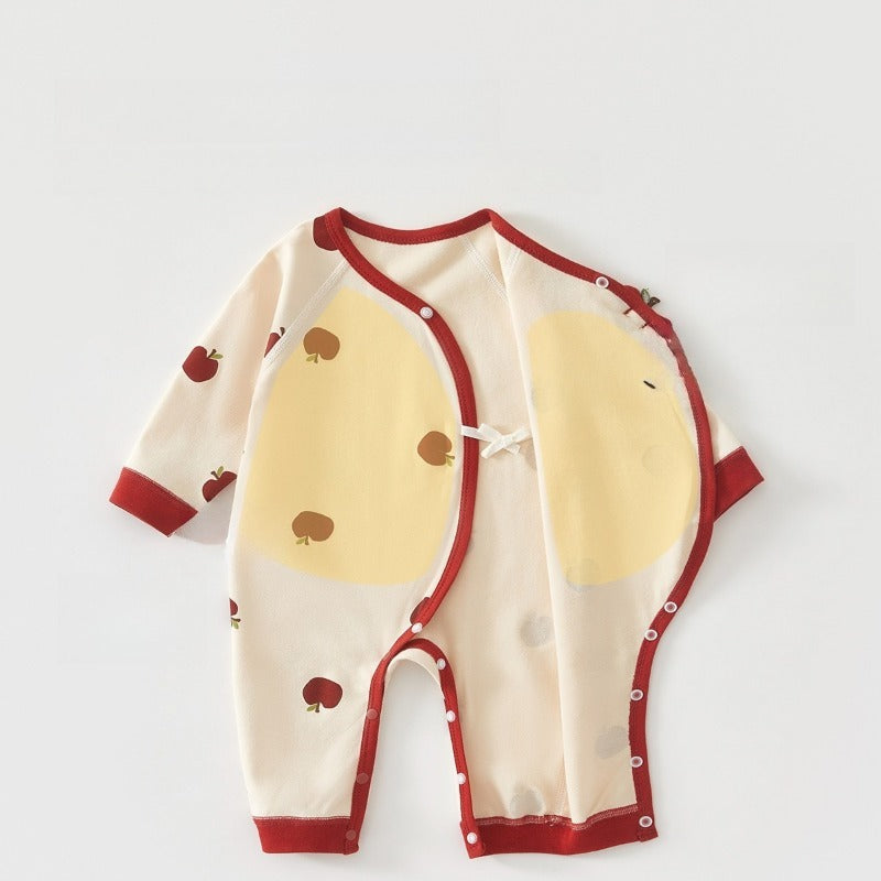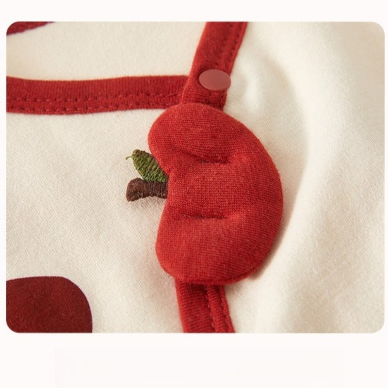 100% Cotton Long-Sleeve Kimono Romper - Red Apple