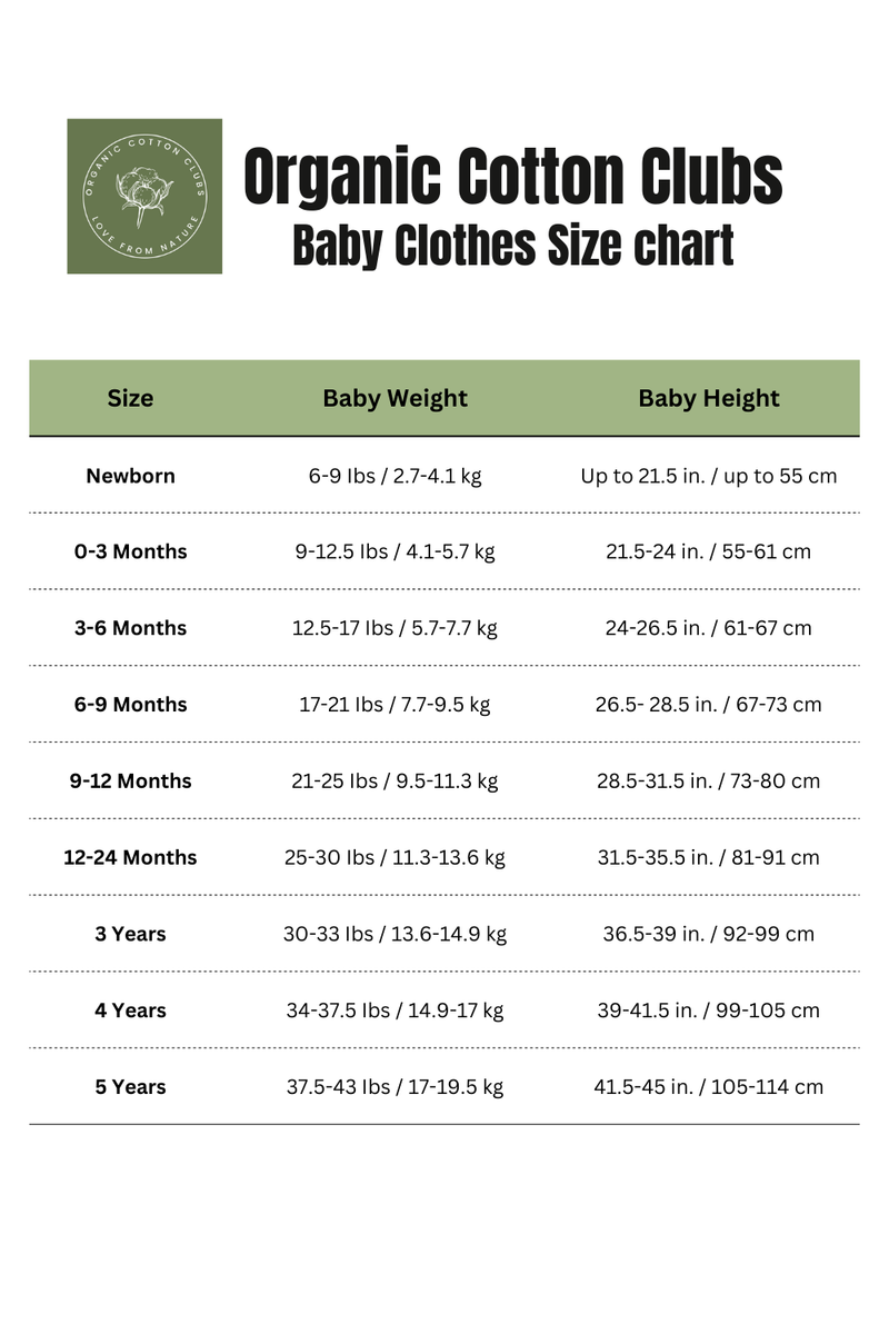 Rompers / bodysuite has a regular fit with a little room to grow, plus loose wrists and ankles for extra comfort. Most parents find it true to size, but if your baby is between sizes, we recommend sizing up for longer wear. Use the ‘NB’ for newborns, ‘0-3 M’ for early infants, and ‘3-6 M’ as your baby grows.