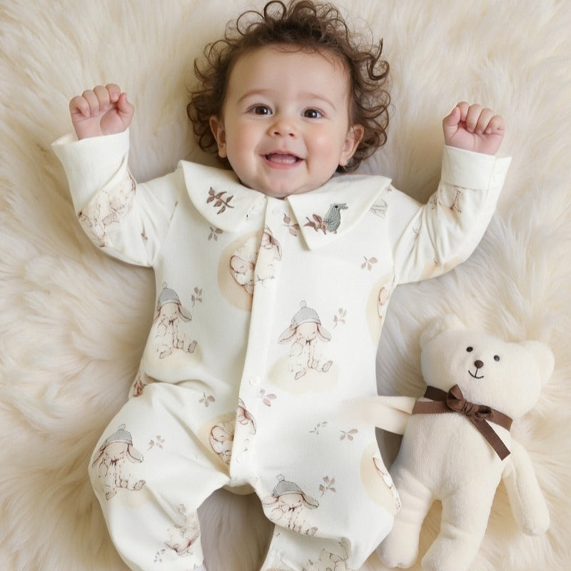 Rompers and bodysuits are a wardrobe staple! They keep your baby's torso covered and warm, prevent bunching, and make diaper changes easy with secure snap closures at the bottom.