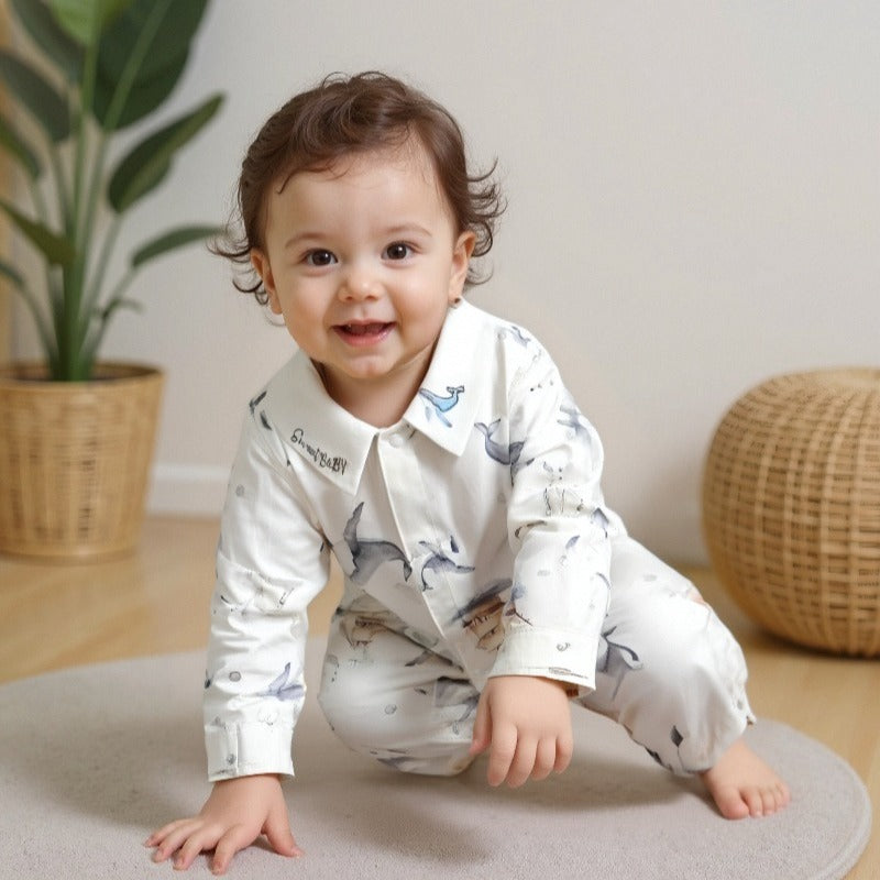 Caring for your romper is easy: just toss it in a regular machine wash and tumble dry on low. The high-quality cotton holds up wash after wash without losing its softness, so the Blue Lion print stays vibrant and the romper stays as comfy as day one.