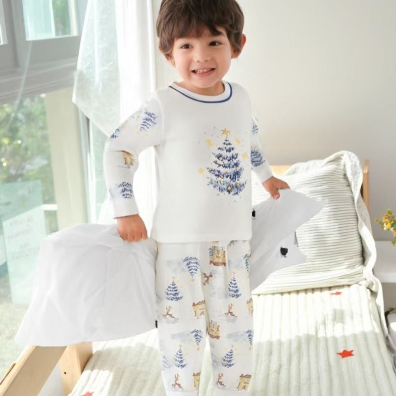 100% Cotton Long Sleeve Top & Pants Set - Cedar with Elk