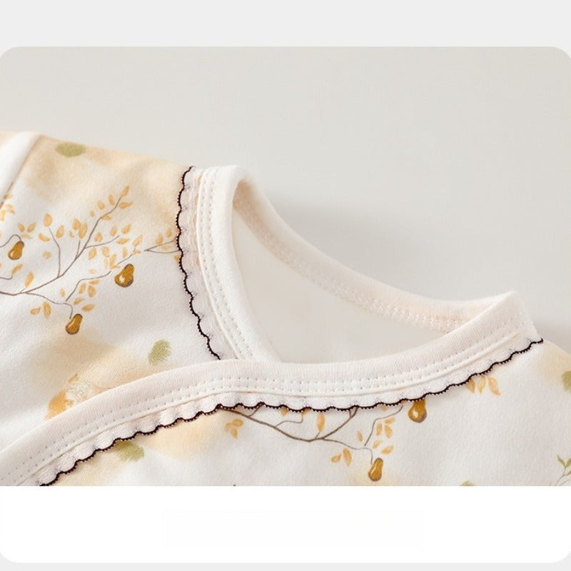 - Kimono / Wrap Style: This style opens completely at the front and is secured with snaps. It's perfect for newborns as you don't have to pull anything over their head or umbilical cord stump. It also allows for easy layering and is ideal for checking on medical devices or monitors.