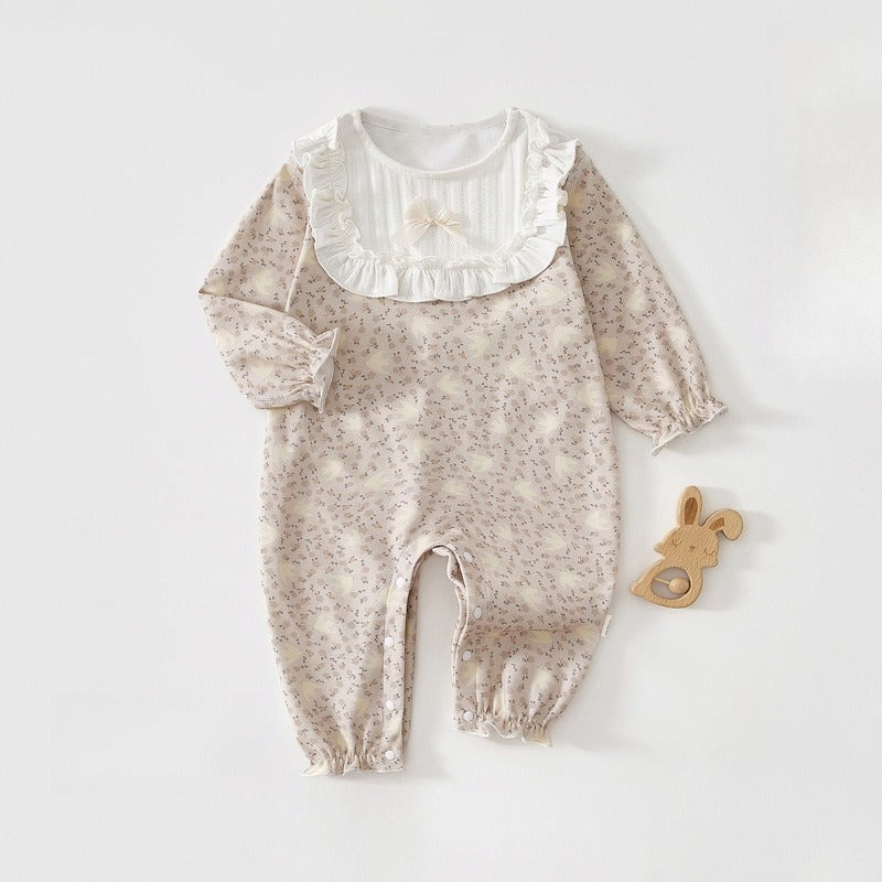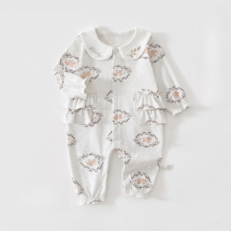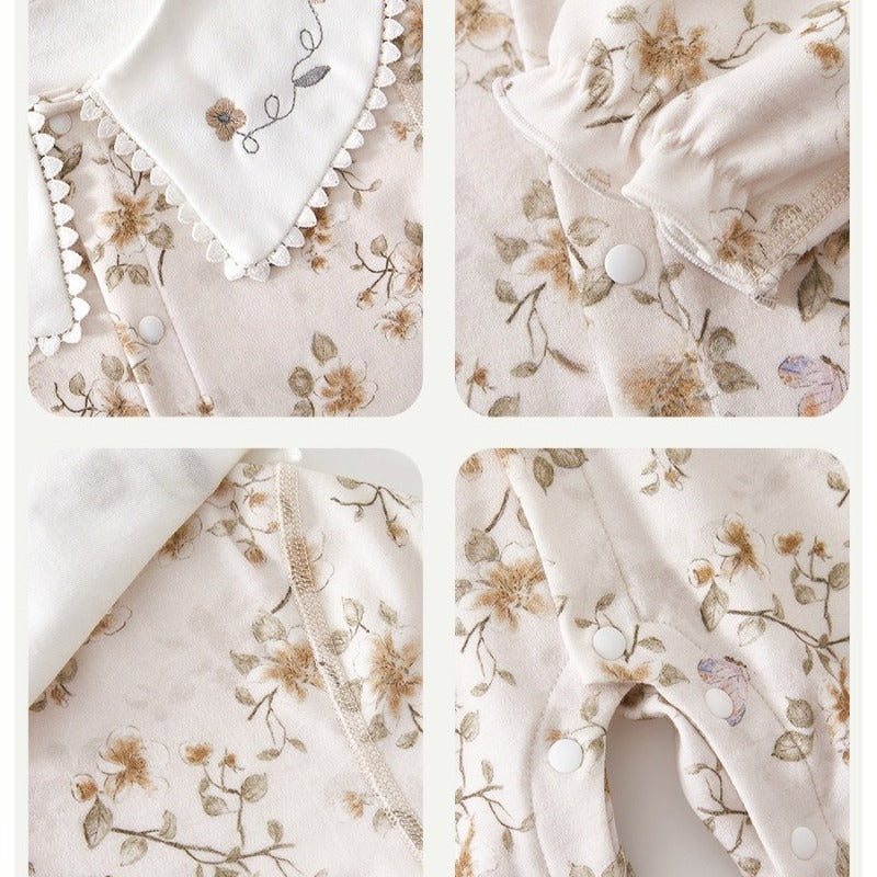 100% Cotton Snap-up Long-Sleeve Romper - Pink Dream Garden