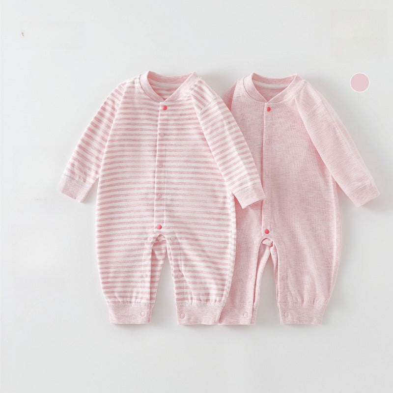 Rompers and bodysuits are a wardrobe staple! They keep your baby's torso covered and warm, prevent bunching, and make diaper changes easy with secure snap closures at the bottom.
