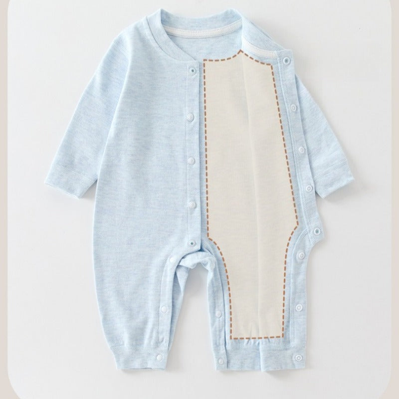 Changing diapers couldn't be simpler thanks to the convenient bottom snaps. You won’t need to fully undress your baby — just unfasten the snaps at the bottom for quick and stress-free changes, whether you’re at home or on the go.