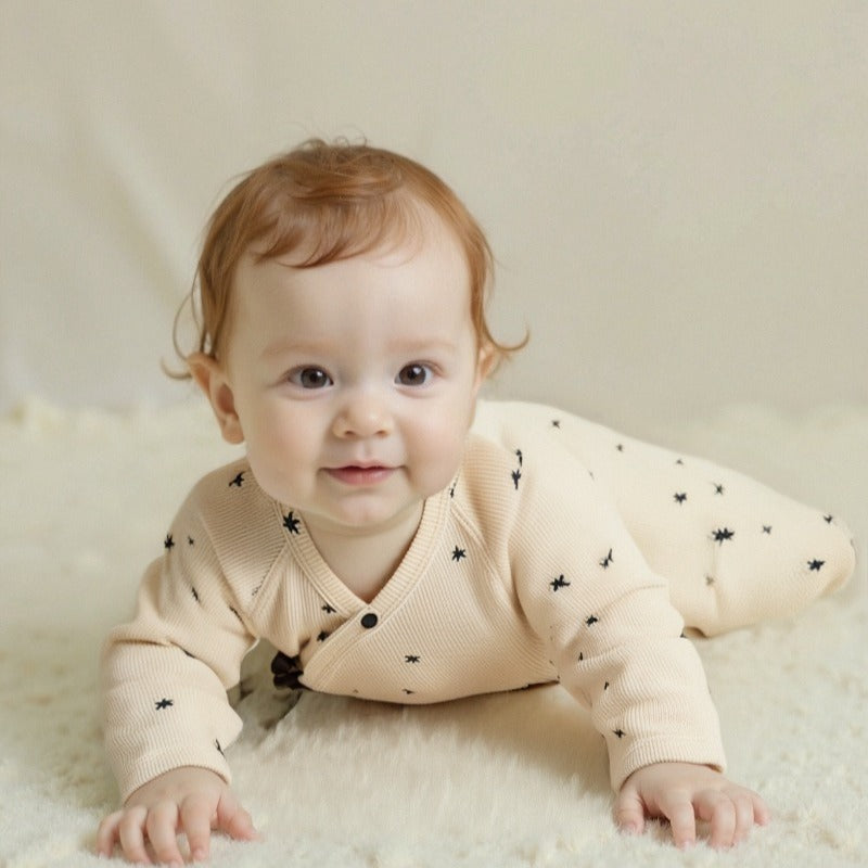 100% Cotton Snap-up Long-Sleeve Romper - Cookie & Bowknot