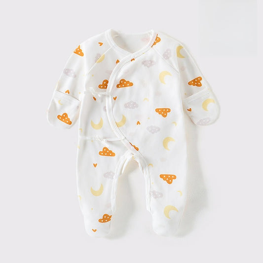 100% Cotton Footed Onesie with Mittens - Cloud & Moon