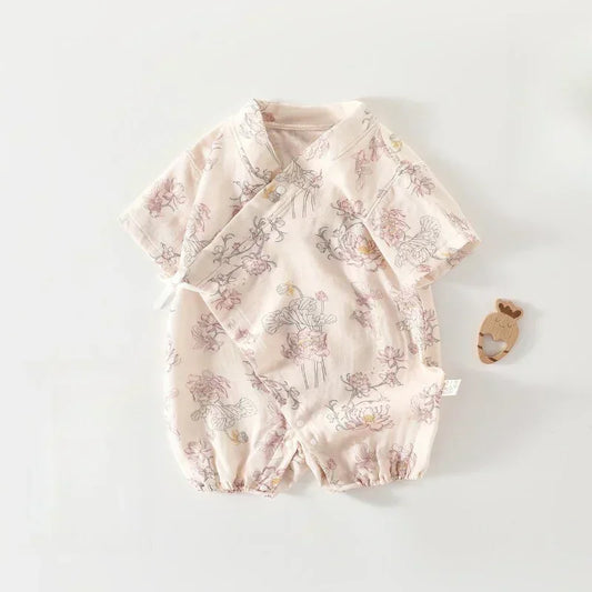 Cotton & Bamboo Muslin Short Sleeve Kimono Romper - Breads