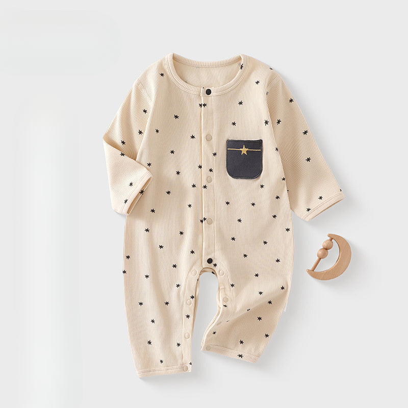 Cotton Long Sleeve Rompers and Bodysuits - Beige Star