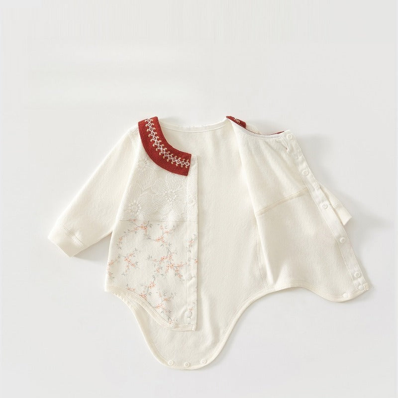 Cotton Long Sleeve Snap-Up Bodysuit - Red Flower