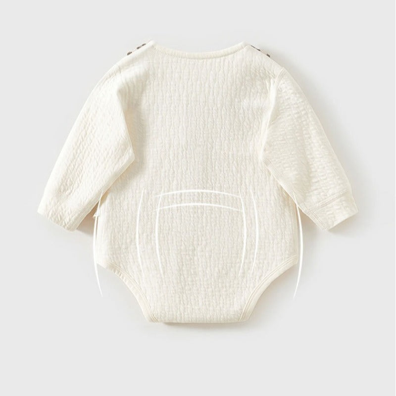 Changing diapers couldn't be simpler thanks to the convenient bottom snaps. You won’t need to fully undress your baby — just unfasten the snaps at the bottom for quick and stress-free changes, whether you’re at home or on the go.