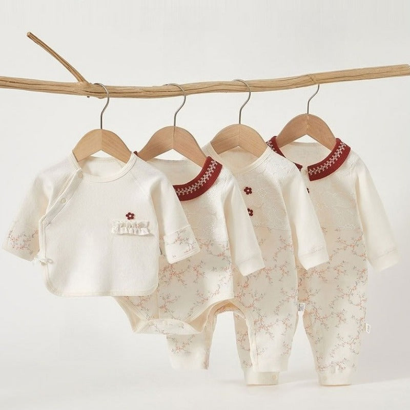 Rompers and bodysuits are a wardrobe staple! They keep your baby's torso covered and warm, prevent bunching, and make diaper changes easy with secure snap closures at the bottom.