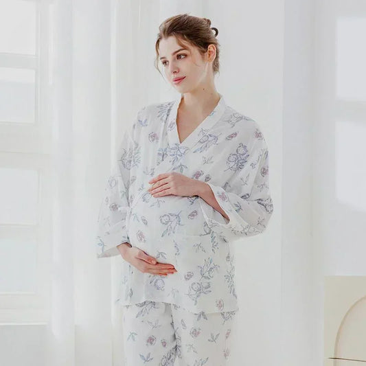 Bodyfeu Muslin Wrap Maternity Pajama Set- Flowers