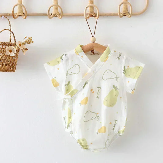 Cotton & Bamboo Muslin Short Sleeve Romper - Sweet Pear