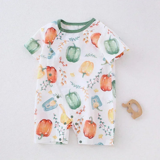 Cotton & Bamboo Muslin Short Sleeve Romper - Pear & Bunny